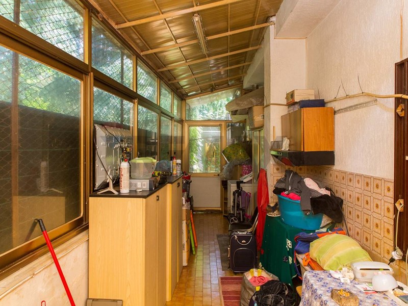 All'esterno dell'immobile troviamo una terrazza e un ampio giardino di circa 800mq con delle piante di nocciole,cachi,alloro.