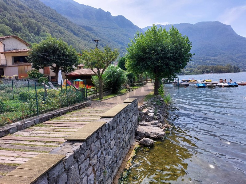nella caratteristica frazione di san Felice a soli 50 metri dal lago d'endine e dalla ciclopedonale , a 300 metri dalla casa del pescatore e pochi minuti da monasterolo del castello proponiamo appartamento nel centro storico recentemente ristrutturato e attualmente adibito come casa vacanza, composto da soggiorno con cottura, bagno, ampia camera matrimoniale con finestra vista lago, giardinetto di proprietà . ideale per le vacanze o come investimento . libero da giugno