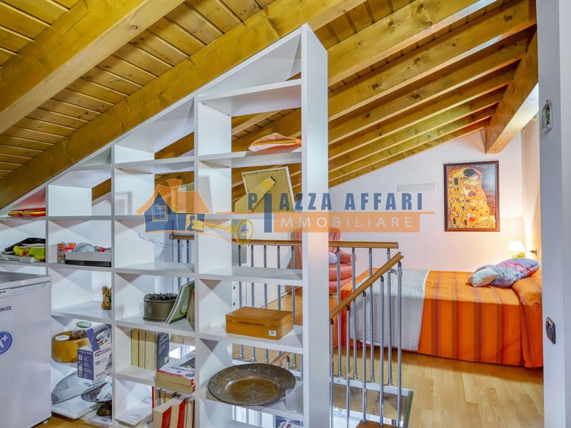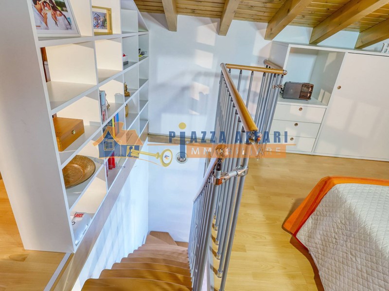 Dal soggiorno, una scala interna conduce al soppalco, uno spazio versatile ideale come zona relax, studio o area multifunzione, capace di aumentare la fruibilità complessiva dellabitazione.