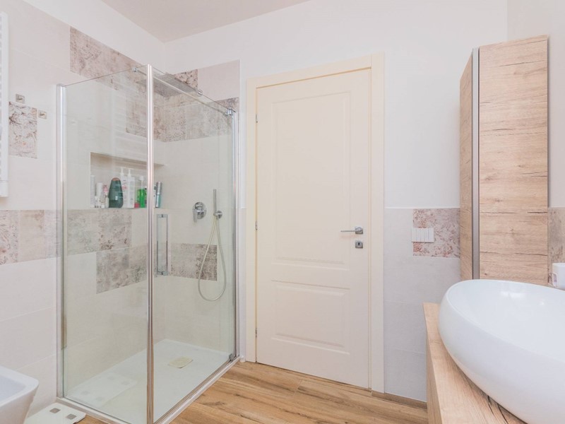 Al piano terra si viene accolti da un ampio open space di circa 80 metri quadrati, dove la cucina di stile classico si integra con un accogliente soggiorno creando un ambiente conviviale e raffinato. Sullo stesso livello si trovano un bagno con doccia, un pratico spazio sottoscala dove è stata ricavata la dispensa, il vano lavanderia e laccesso diretto al garage doppio, comodo e funzionale.
