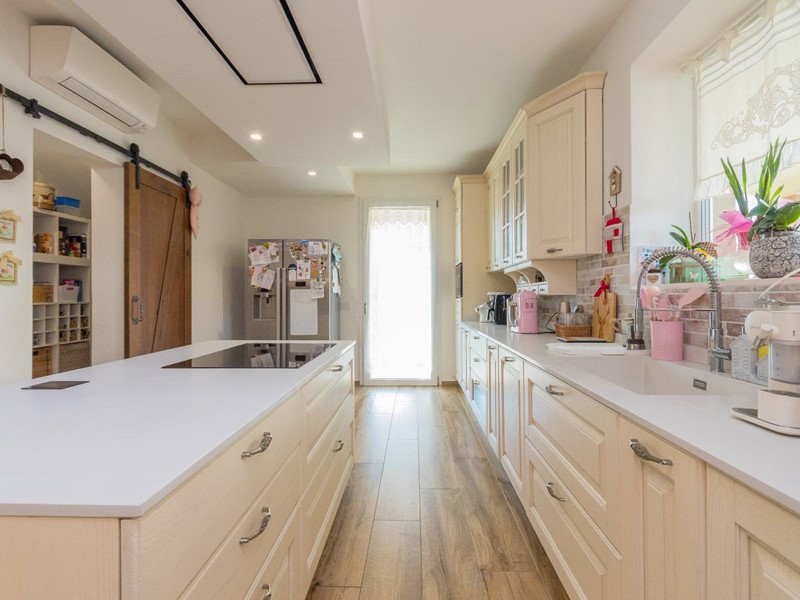 La casa si distingue per lattenzione ai dettagli e per le dotazioni di alto livello: impianto fotovoltaico da 6 kW con batteria di accumulo da 10 kW, riscaldamento a pavimento, boiler da 500 litri per lacqua calda sanitaria, infissi in alluminio con triplo vetro, muri da 40 centimetri con cappotto esterno da 15 centimetri, impianto dallarme e sensori di illuminazione notturna esterna. Queste caratteristiche garantiscono una perfetta efficienza energetica, comfort elevato e sicurezza in ogni momento della giornata.