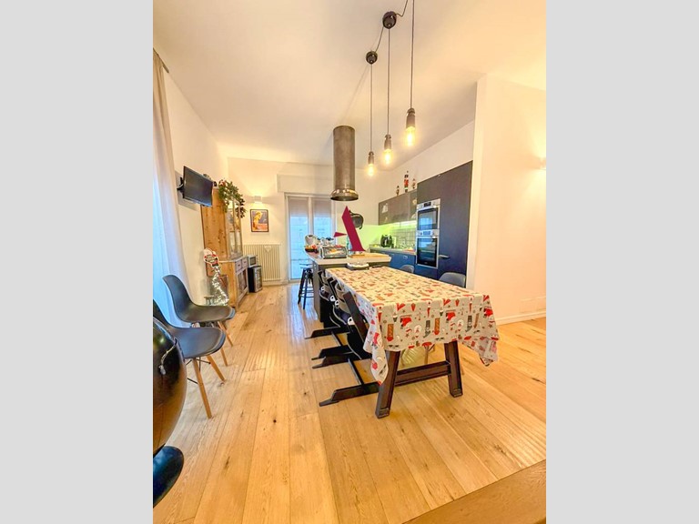 Limmobile, posto al primo piano di uno stabile signorile, si distingue per gli ambienti luminosi e per il raffinato pavimento in parquet presente in ogni stanza. Si compone di un accogliente ingresso, ampio salone con cucina abitabile, tre spaziose camere da letto e due bagni moderni.