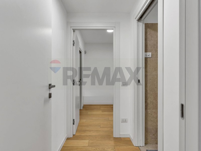 Gli spazi interni sono ben distribuiti in due ampi locali, comprendenti un soggiorno con cucina a vista, una luminosa camera da letto, una cabina armadio e un bagno finestrato e funzionale.