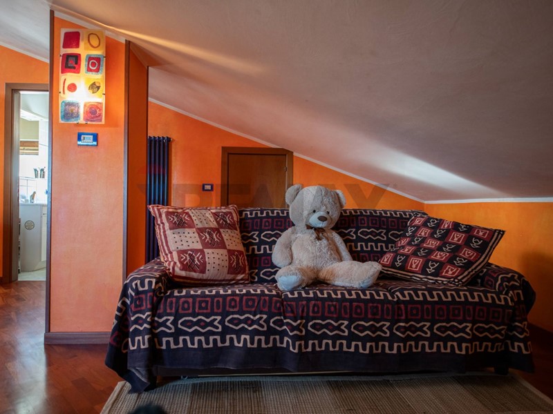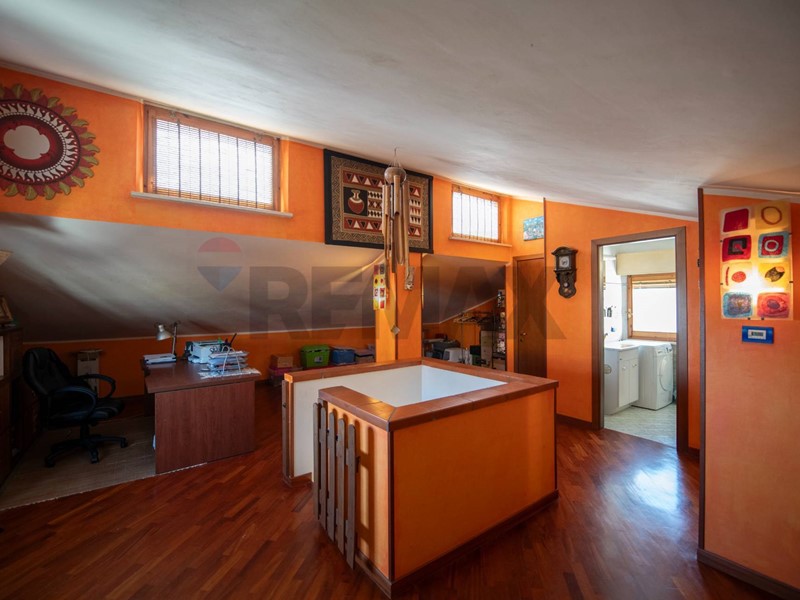 Il valore aggiunto di questa soluzione è la mansarda, con accesso dalla zona giorno, questo piano è composto da un grande ambiente principale, dotato anche di camino a legna, poi abbiamo una lavanderia ed un ripostiglio. Qui si può ricavare anche la terza camera.
