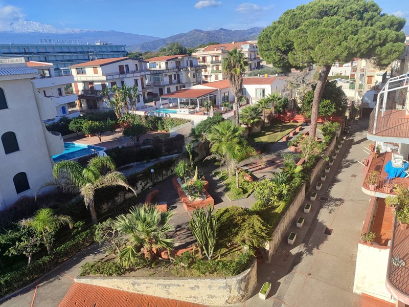 La proprietà risulta ulteriormente valorizzata da un terrazzo condominiale, panoramico, di circa 440 mq, con vista a 360° su mare, Etna, Castelmola e Capo Taormina, giardino condominiale ben curato, docce esterne per il rientro dal mare, garage privato di circa 14 mq, ingresso al residence con cancello automatico e servizio di portineria.