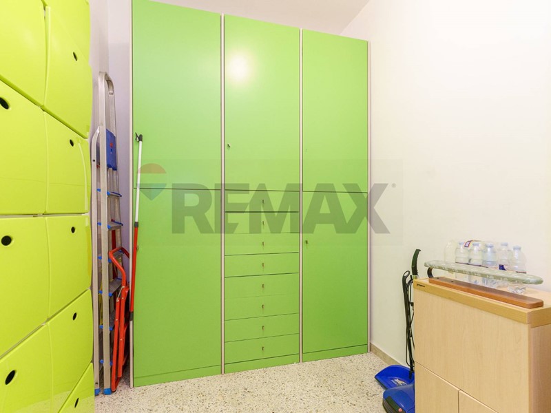 Cucina abitabile e ripostiglio attrezzato con 20 scarpiere e armadio a 3 ante