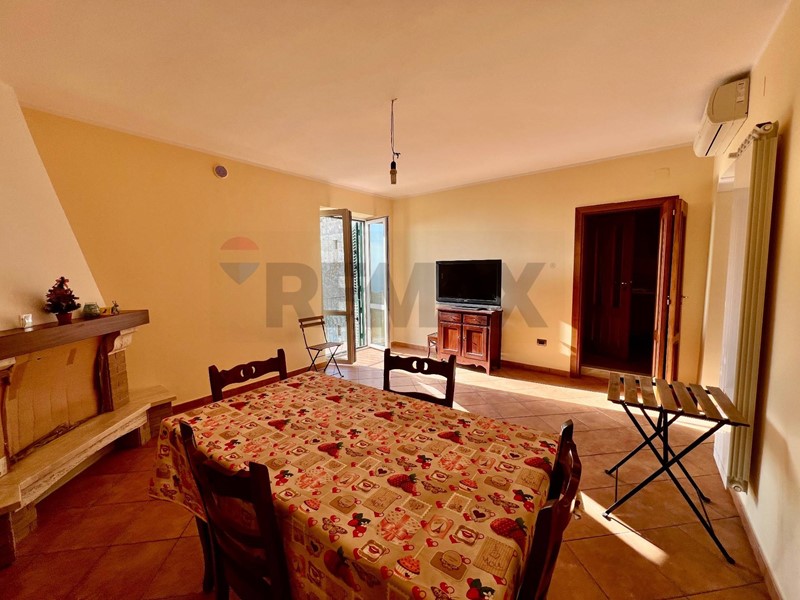 Lingresso conduce a un salone/soggiorno ampio e luminoso, impreziosito dal camino, vero cuore della casa: un dettaglio che crea atmosfera e rende gli spazi accoglienti in ogni stagione. Dal living si accede al balcone con vista mare, un angolo perfetto per iniziare la giornata con un caffè o per concedersi il piacere dei tramonti sulla costa.