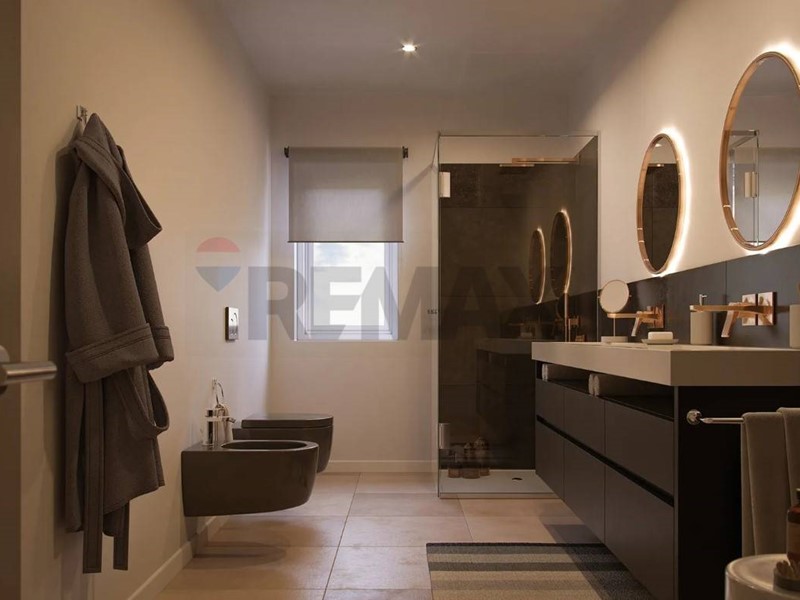 La zona notte, sul lato nord, è composta da due camere singole e una suite matrimoniale con cabina armadio e bagno privato finestrato. Tutte le stanze affacciano sul terrazzo continuo, riservato e perfettamente vivibile, per unaria sempre fresca e spazi sempre luminosi.
