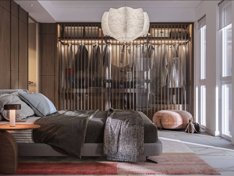 La zona notte è composta da tre camere da letto, di cui una suite padronale con cabina armadio e bagno privato, collegati in modo funzionale e riservato. Un secondo bagno finestrato serve la zona notte. Nel disimpegno è stata progettata una comoda nicchia lavanderia a scomparsa, che ottimizza lo spazio mantenendo lestetica.