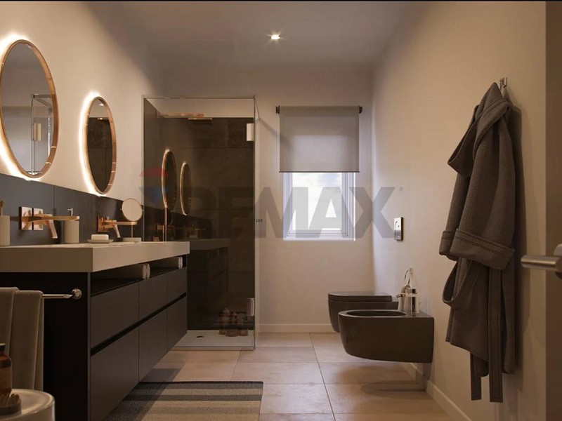 Lingresso si apre su unampia zona giorno doppia ed open space con cucina a vista, caratterizzata da grandi vetrate che collegano perfettamente linterno con lesterno. Il terrazzo, coperto e ben proporzionato, è pensato per accogliere una zona pranzo allaperto e un angolo relax.