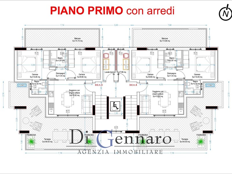 L' appartamento proposto in annuncio si trova al piano primo, triplice esposizione (Sud / est /Nord) ed al suo interno gli spazi sono così organizzati: ingresso su zona giorno con angolo cottura, disimpegno nella zona notte che conta due camere da letto matrimoniali e due bagni, entrambi con doccia e finestra. Punto forte sono sicuramente gli spazi esterni: un grande terrazzo coperto di 30 mq a servizio della zona giorno ed un secondo balcone di 15 mq per la zona notte, accessibile da entrambe le camere dal letto.