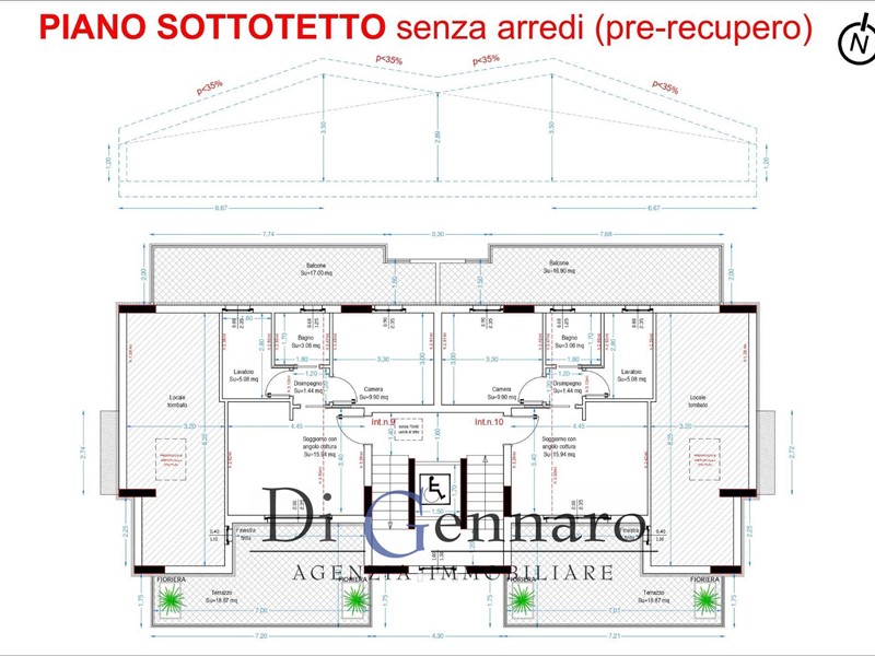 L' appartamento proposto in annuncio si trova al quarto ed ultimo piano, triplice esposizione (Sud / est/Nord) ed al suo interno gli spazi sono così organizzati: ingresso su zona giorno con angolo cottura, disimpegno nella zona notte che conta due camere da letto matrimoniali e un bagno con doccia e finestra oltre ad un locale sottotetto di quasi 20 mq. dove si puo' ricavare una terza camera . Punto forte sono sicuramente gli spazi esterni: un grande terrazzo di 20 mq a servizio della zona giorno ed un secondo balcone di 15 mq per la zona notte, accessibile da entrambe le camere dal letto.