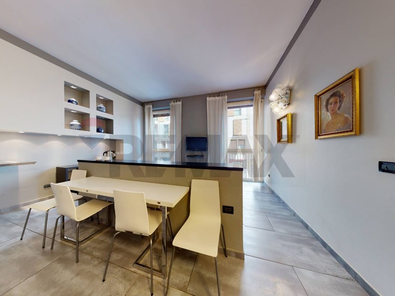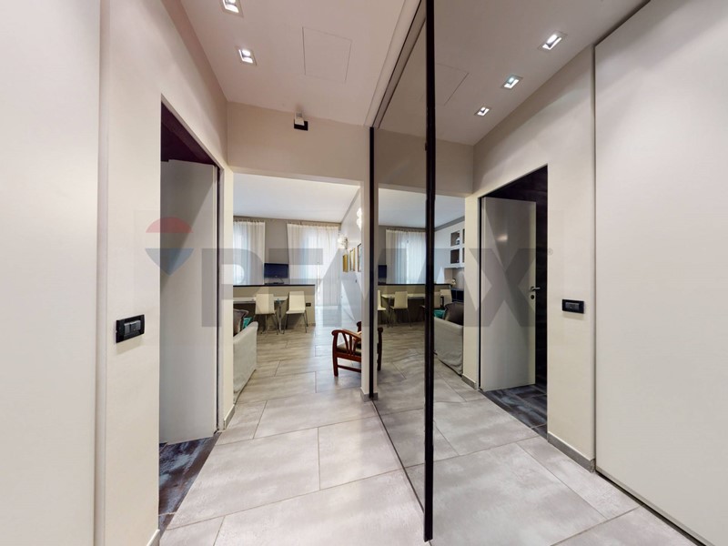 La soluzione si presenta ristrutturata e arredata completa di porta blindata, allarme, riscaldamento centralizzato, aria condizionata canalizzata a soffitto, tapparelle automatizzate, piano cottura a induzione, forno, lavastoviglie, lavatrice, divano, letto matrimoniale e tv.