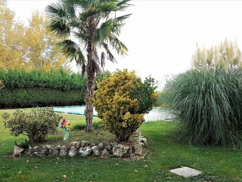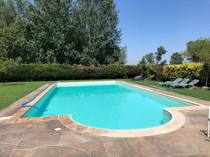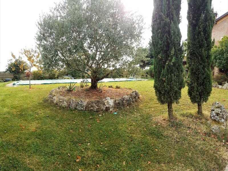 Larea esterna di circa 2.000 mq è in parte pavimentata con autobloccanti e in parte destinata a giardino, impreziosita da alberi di diverse essenze e da una siepe perimetrale che garantisce privacy. A completare la proprietà, una splendida piscina interrata di 75 mq che valorizza ulteriormente lambiente esterno.