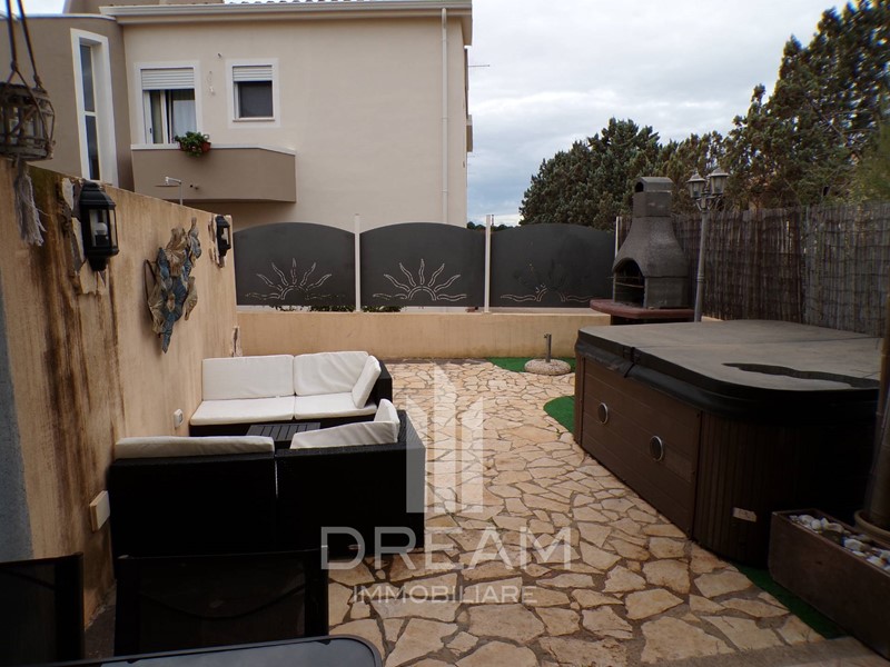 A fare da contorno un ampio patio attrezzato con vasca jacuzzi, cortile con doccia esterna da poter vivere soprattutto nella bella stagione come zona relax, spazio per i propri animali domestici e come zona da adibire a cene/pranzi all'aria aperta.