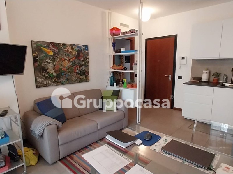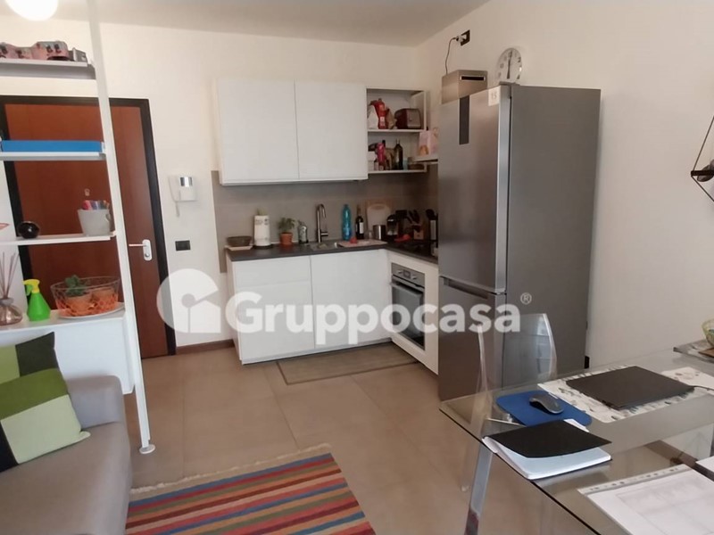 In palazzo signorile, di recente costruzione anno 2014, prestigioso appartamento, composto da soggiorno con angolo cottura con arredo cucina completo di elettrodomestici, camera matrimoniale, disimpegno, bagno, terrazzo, completo di cantina e box autorimessa con basculante elettrica. Disponibile dal 01/03/2026. Caratteristiche e accessori: riscaldamento e raffrescamento a pavimento con impianto VMC, tapparelle elettriche, porta blindata, videocitofono, piano cottura ad induzione, forno, frigorifero, non è presente gas.