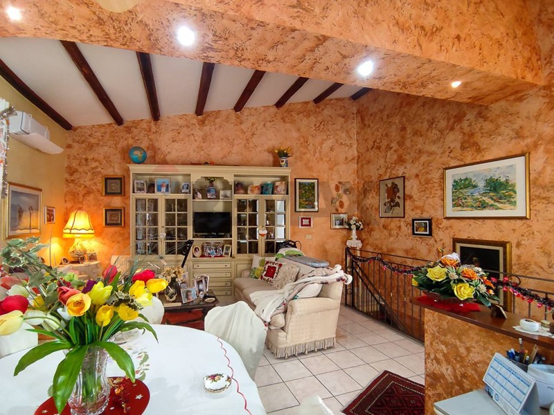 L'immobile è così composto, ingresso su soggiorno con alti tetti con travi in legno, cucina con angolo cottura in muratura, una scala interna in ferro e legno da accesso al piano sottostante dove troviamo una camera da letto matrimoniale con affaccio su balcone privato e piccola veranda adibita a ripostiglio, un ulteriore cameretta finestrata attualmente utilizzata come cabina armadio, bagno con doccia e lavanderia.