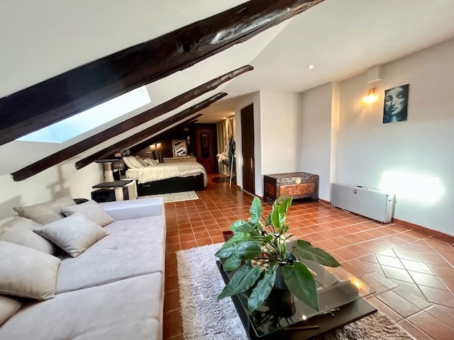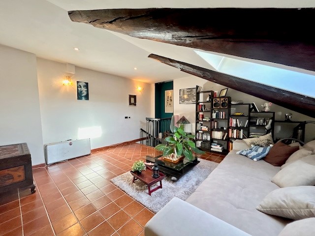Una scala a chiocciola interna conduce al piano sottotetto, dove troviamo un ampio open space versatile, facilmente personalizzabile come seconda camera, area relax, zona giochi, studio o sala TV.