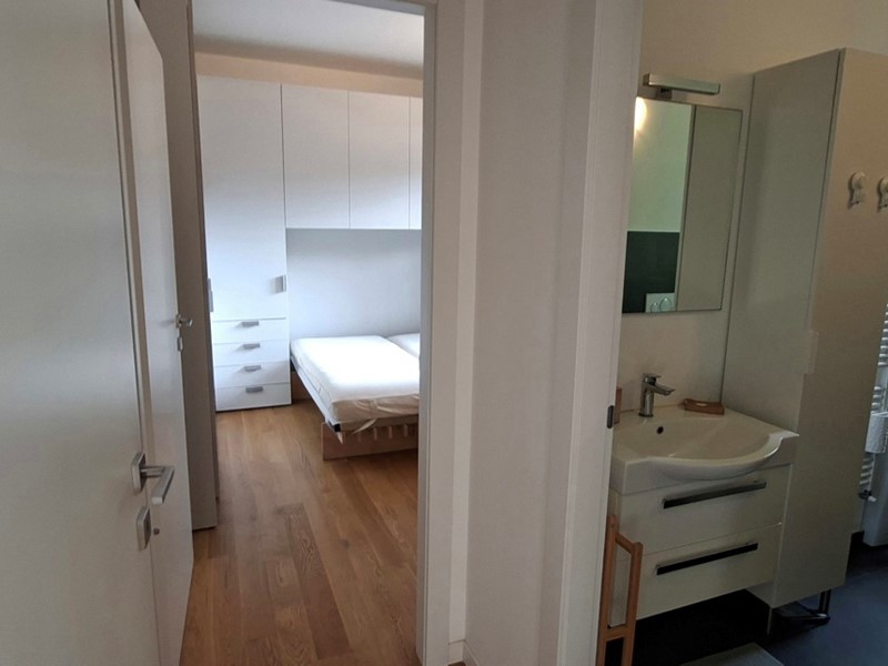 al primo piano luminoso bilocale di mq.55così composto: ingresso, soggiorno con cucina a vista, camera matrimoniale, bagno finestrato con doccia e ripostiglio.