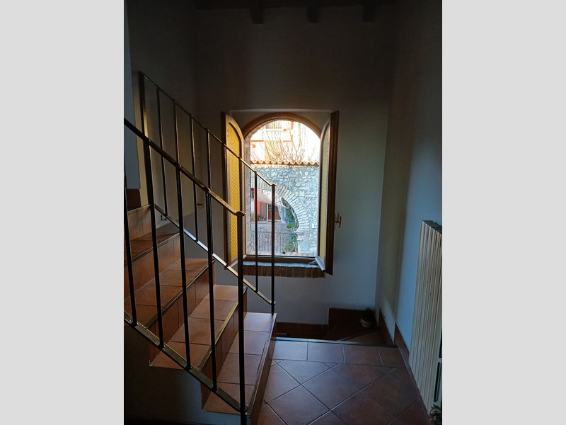 l'alloggio verte su 2 livelli : portico disimpegno /lav. soggiorno con camino cucinotto (primo livello ) dal soggiorno si sale al piano mansardato con travi a vista 2 camere bagno e un locale multiuso.