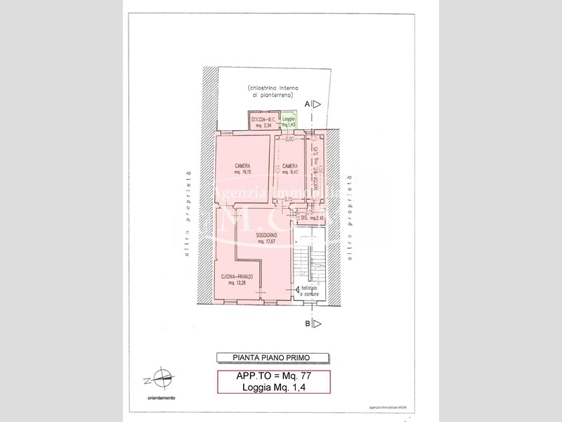 L’immobile di mq. 77 oltre piccolo terrazzo coperto si compone di: