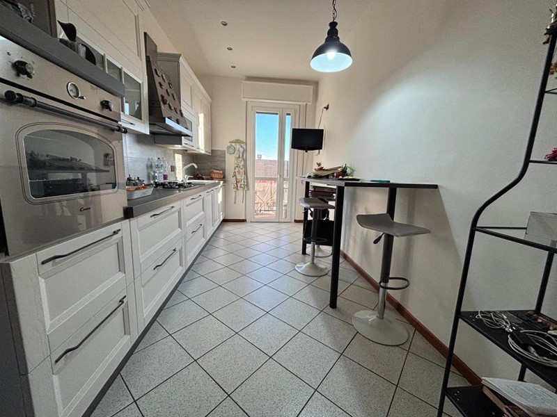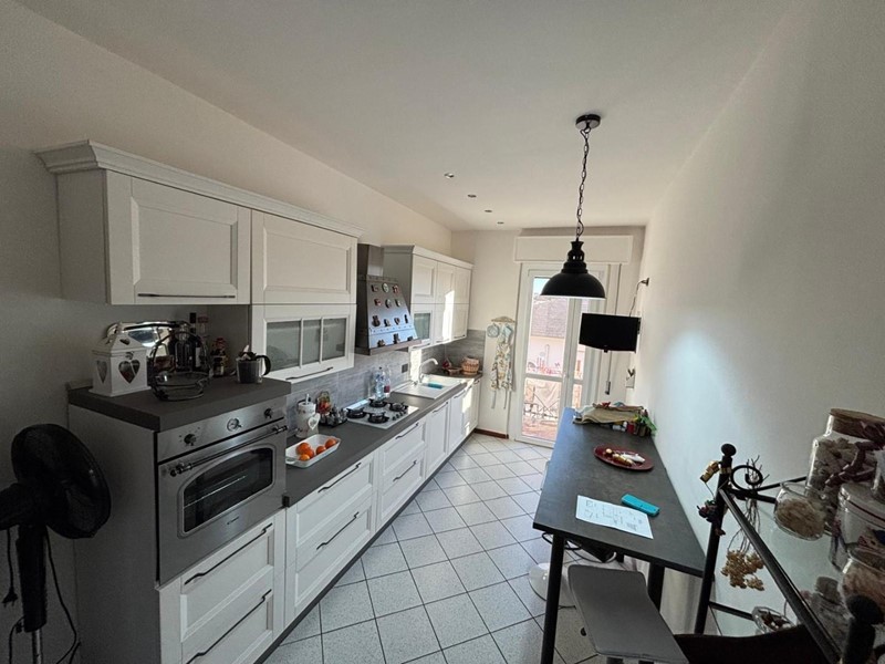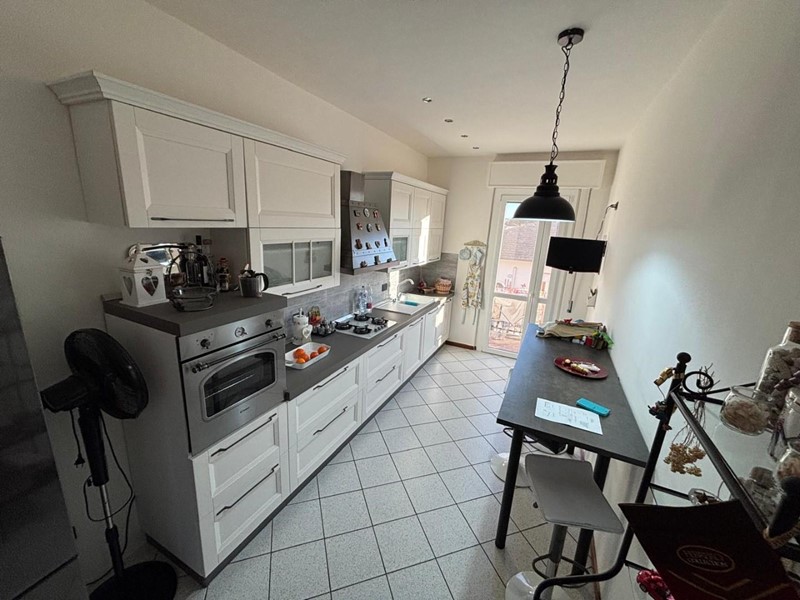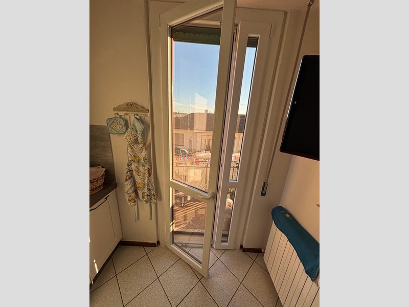 La cucina abitabile, completa di arredo semi nuovo e dotata di piccolo balcone, è uno spazio pratico e già pronto per essere vissuto fin dal primo giorno.