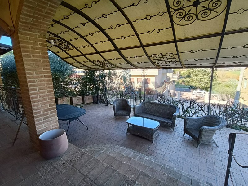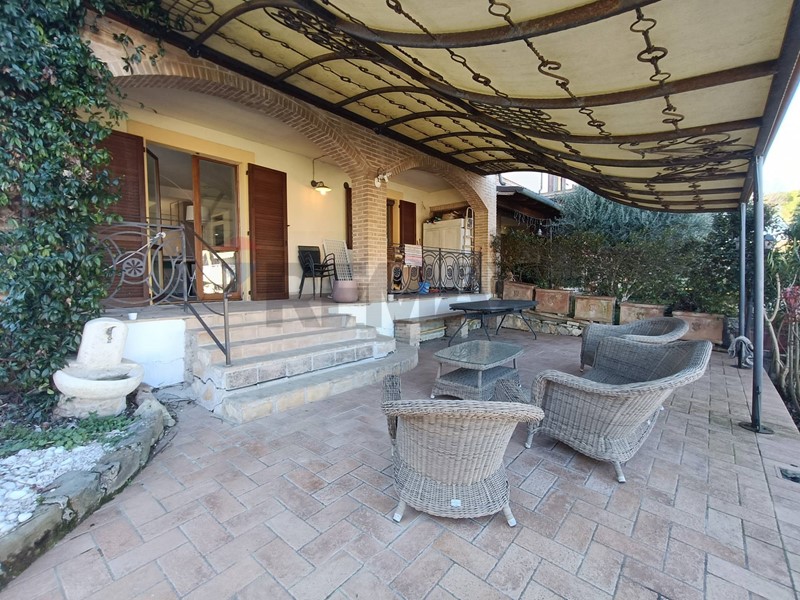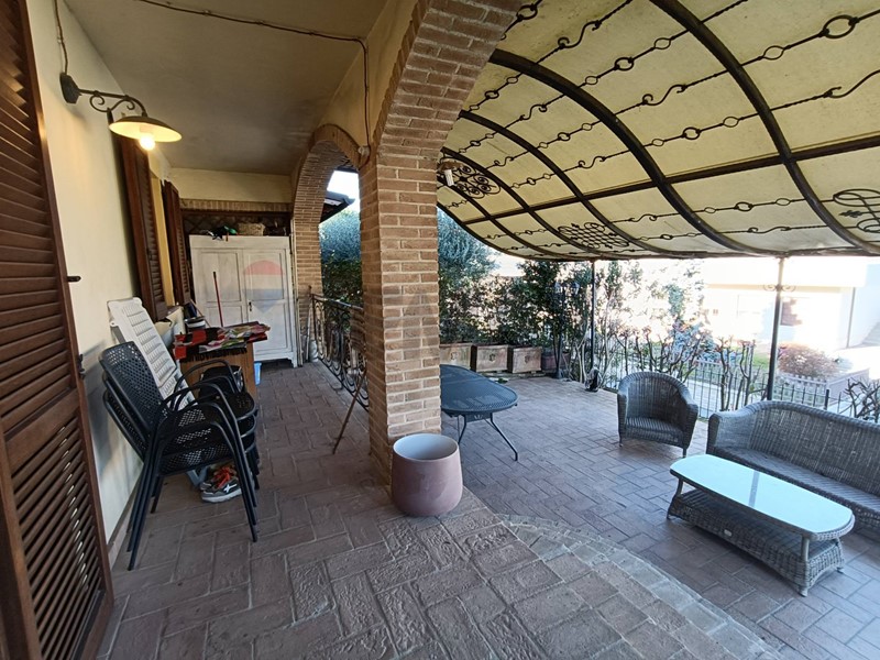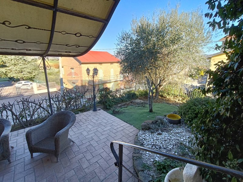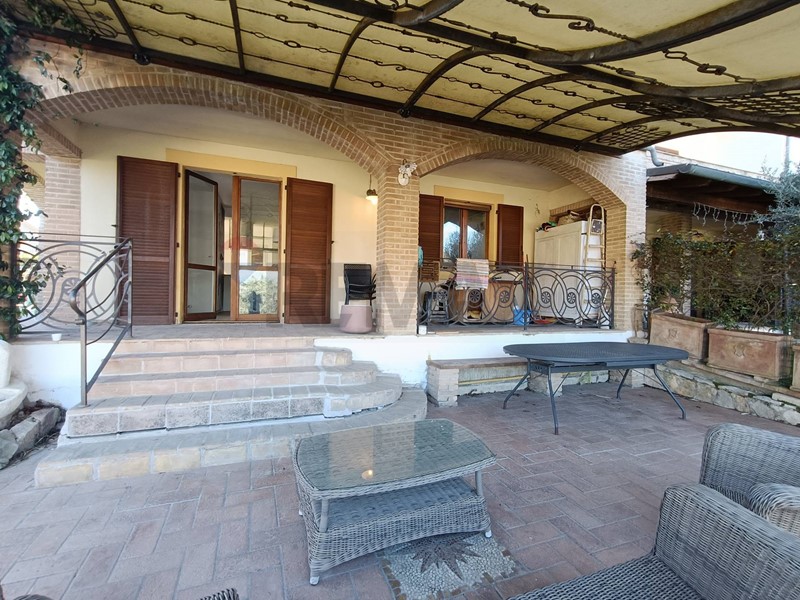 Dal soggiorno si accede al terrazzo al giardino privato e al terreno circostante, ideale per godere di momenti di relax all'aria aperta.