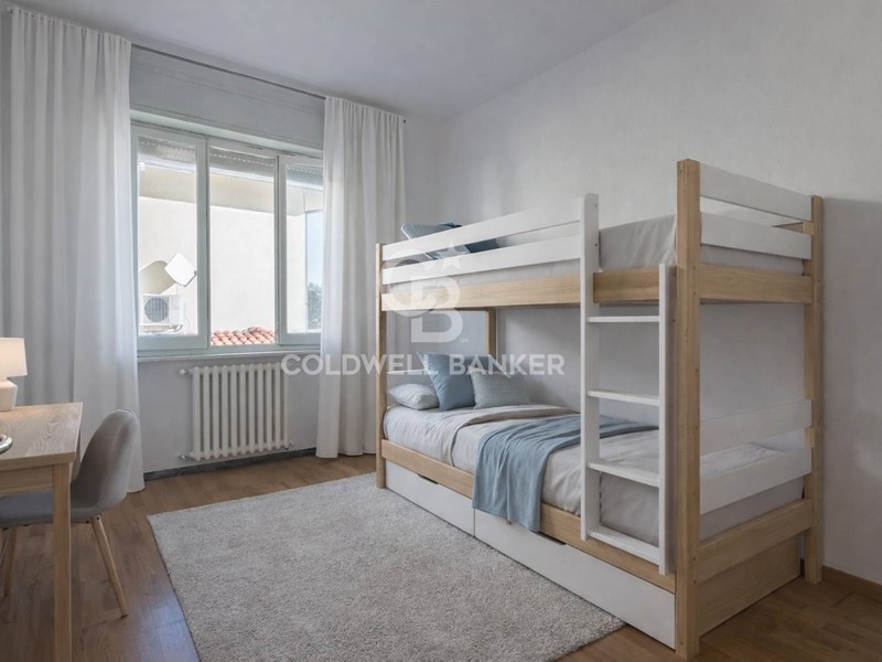 Limmobile si trova al primo piano, è libero su tre lati e si accede tramite scala esterna indipendente. Internamente, è composto da due camere da letto, una sala da bagno, una cucina abitabile, un soggiorno living e un sottotetto ad uso ripostiglio.