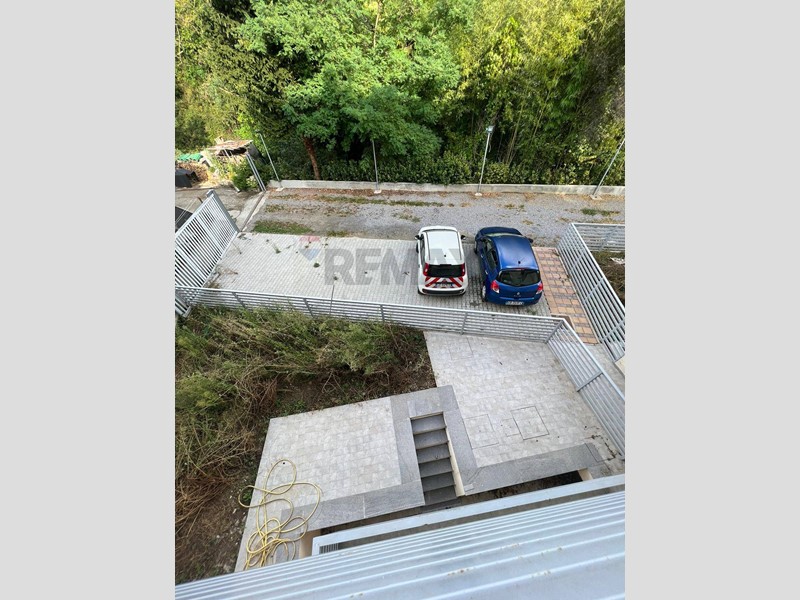 Da un comodo vialetto si raggiunge il piazzale condominiale sul retro dell'edificio, protetto dal cancello elettrico, dove è presente un comodo posto auto assegnato alla proprietà e l'accesso pedonale interno al condominio.