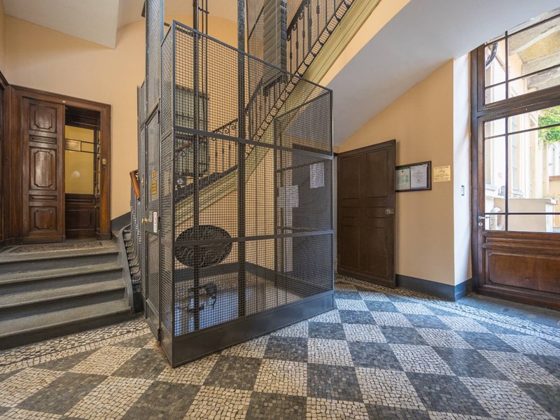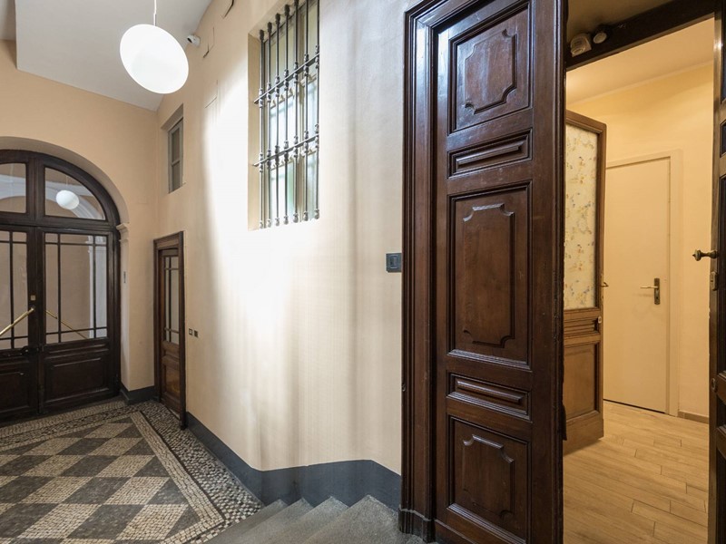 I pavimenti sono in parquet con motivo geometrico e i soffitti conservano l'altezza originale di mt 3,80.