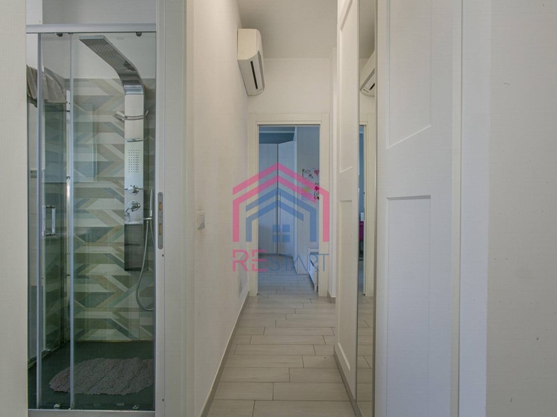 L'appartamento è stato ristrutturato di recente e si presenta in ottime condizioni di conservazione, vi sono infissi nuovi in doppio vetro/PVC che garantiscono un ottimo isolamento termico e acustico, tapparelle elettriche, inferiate blindate, condizionatori caldo/freddo e porta blindata.