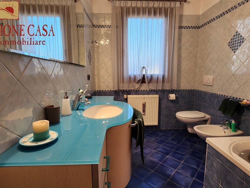 Caratteristiche interne: riscaldamento a pavimento al piano terra, due climatizzatori, impianto fotovoltaico da 5 kW con 2 batterie di accumulo da 10 kW installato nel 2023, sono compresi i mobili del salotto, della cucina e dei bagni, nonché l'impianto d'allarme.