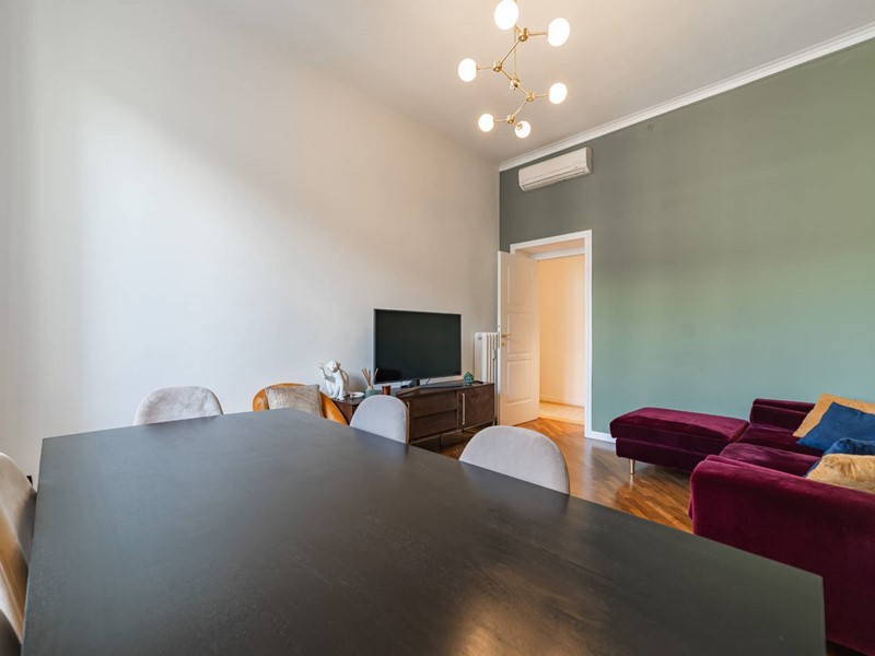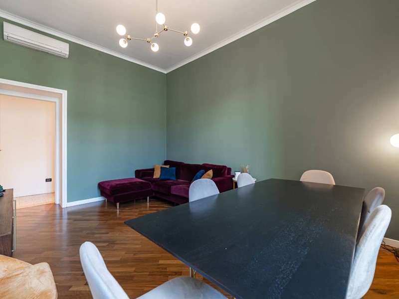 L' appartamento che mantiene gran parte del fascino originale sia nella disposizione dei locali che nelle finiture, è stato recentemente ristrutturato con materiali e finiture di pregio.