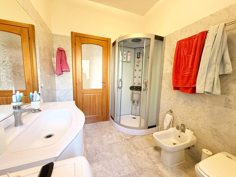 Al primo piano tre camere da letto con accesso all' ampio terrazzo con vista mare, cameretta con finestra, doppi servizi con finestra, terrazzo.