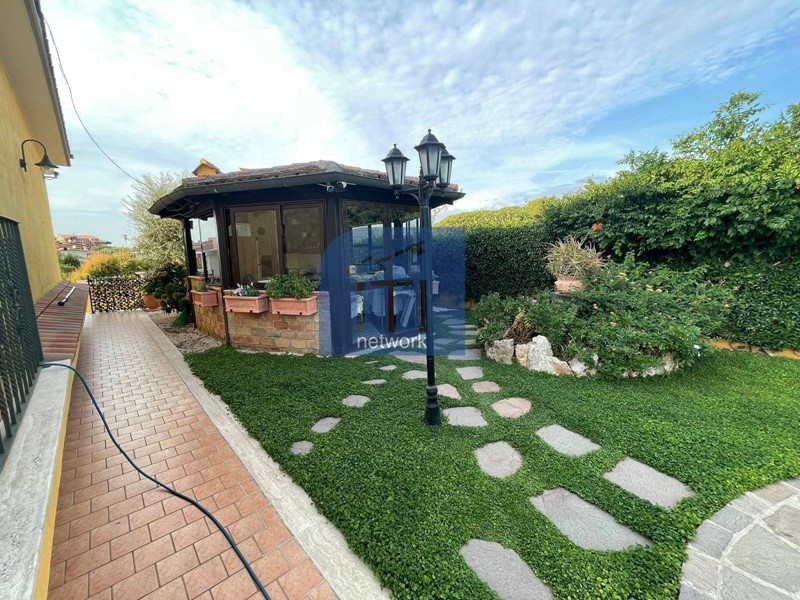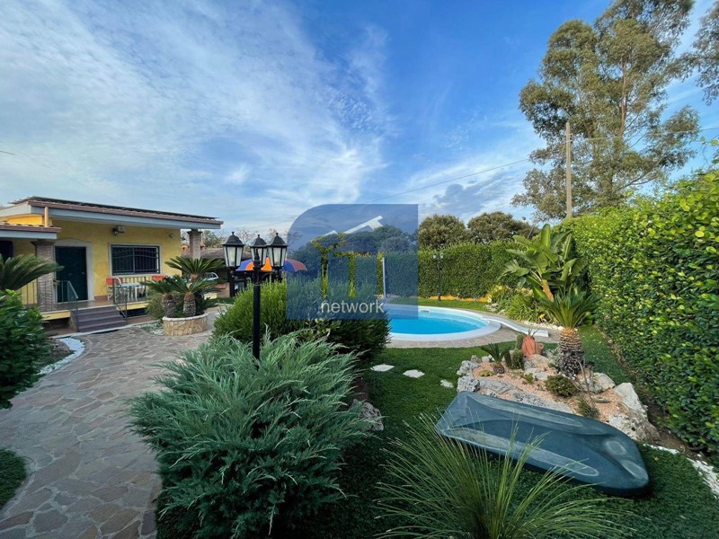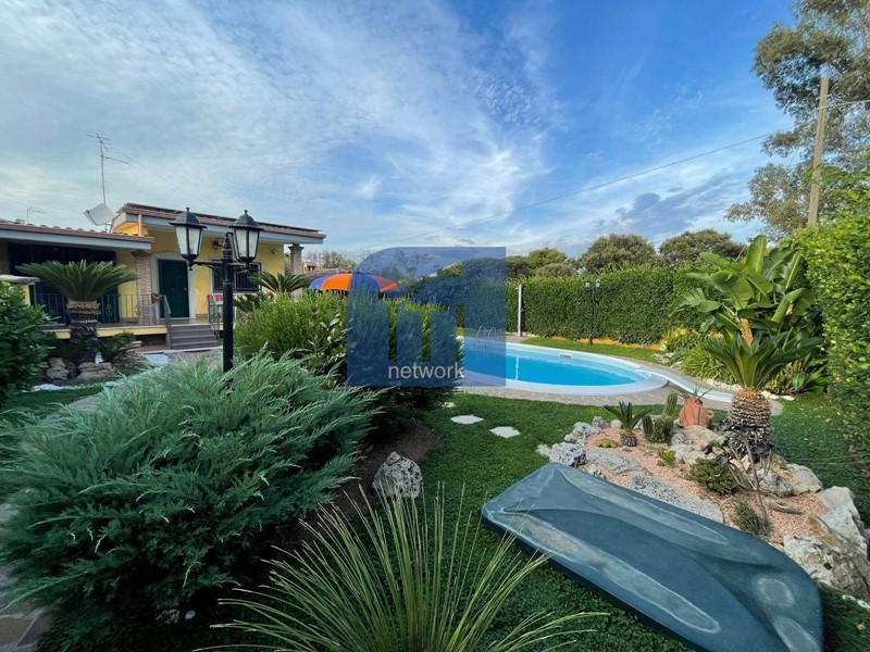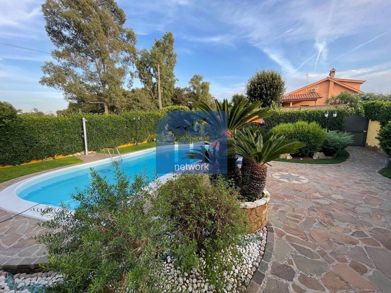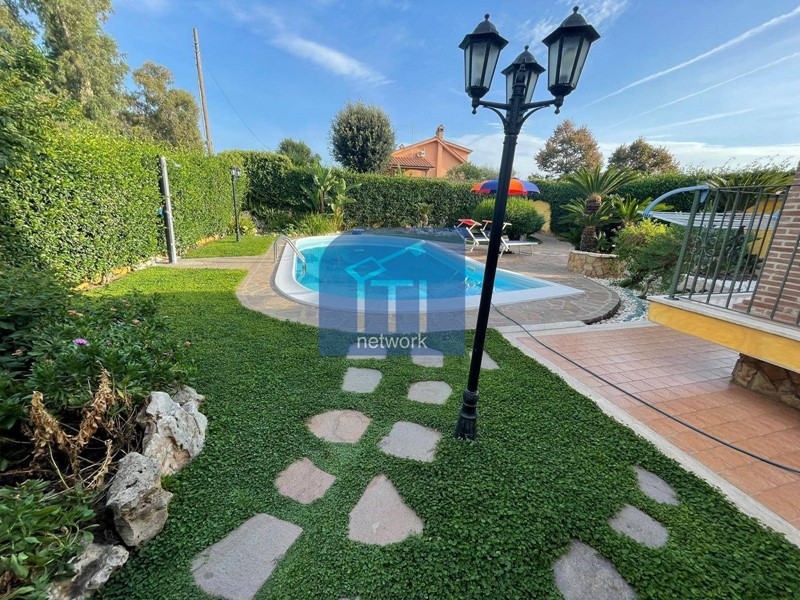 Ardea, precisamente a Nuova Florida, villa bifamiliare, con doppia entrata indipendente, su due livelli, composta al piano terra da luminoso salone con uscita ad un patio e ad un grande giardino dotato di piscina interrata e gazebo in muratura, due camerette e servizio finestrato con comodo box doccia; al piano inferiore ampio salone con camino, cucina abitabile anch'essa con porta finestra che da accesso al giardino e servizio con vasca. Completa la proprietà un posto auto, una cantina ed un locale commerciale adibito a pizzeria.