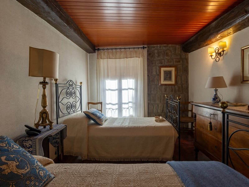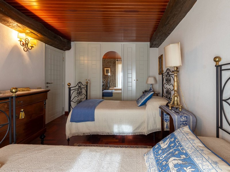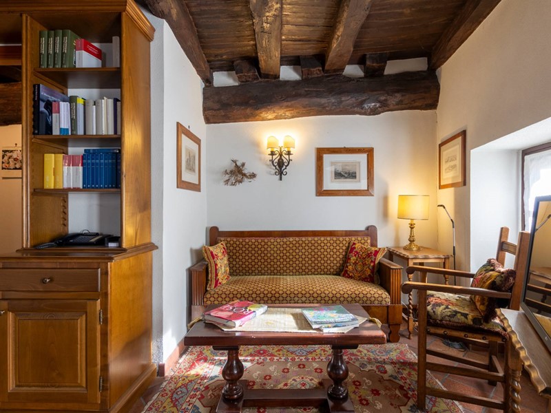 Allingresso una bella ed imponente porta in massello nasconde uno studiolo-pensatoio, caratterizzato da un grande camino e, a seguire, ancora una camera da letto singola.