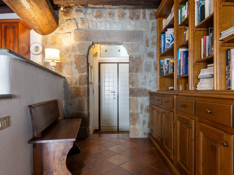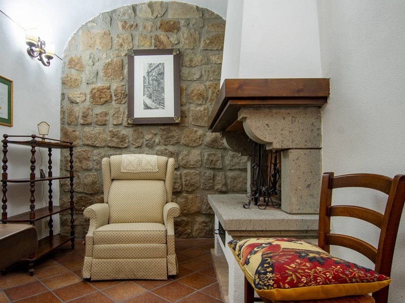 Altri dettagli di pregio che arricchiscono lambiente sono le poderose travi in legno del600 e le pareti pietra a vista, alternate a zone ad intonaco bianco e a ben cinque finestre che sottolineano landamento poligonale della facciata.