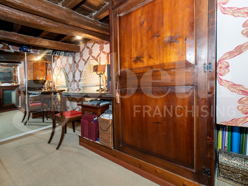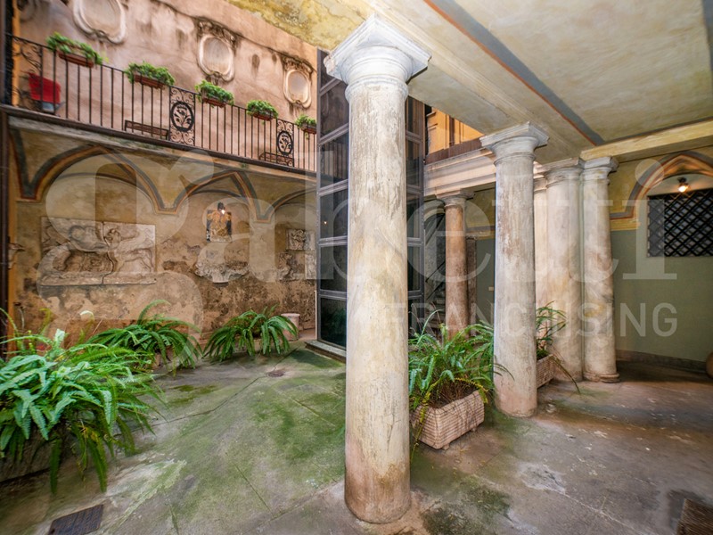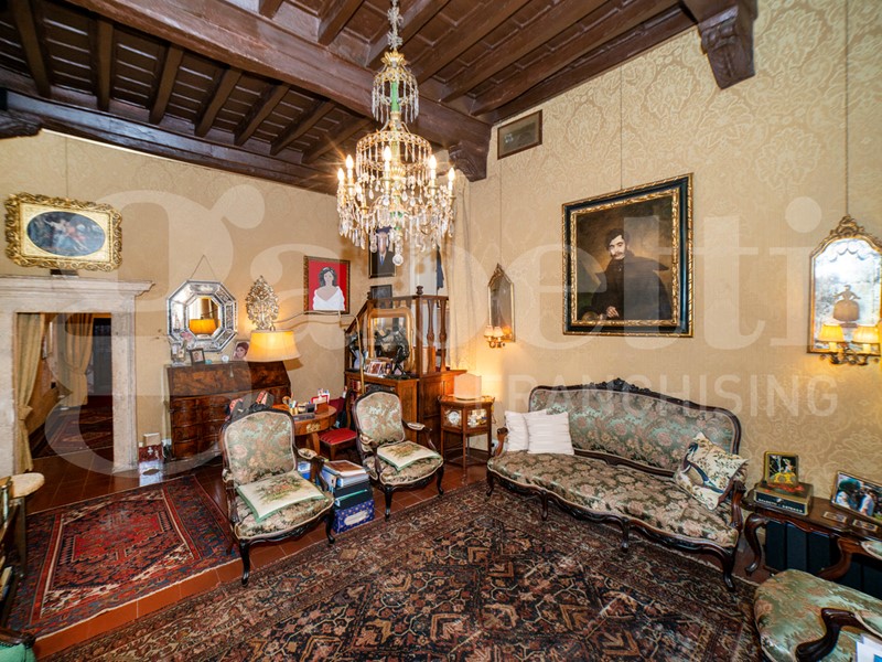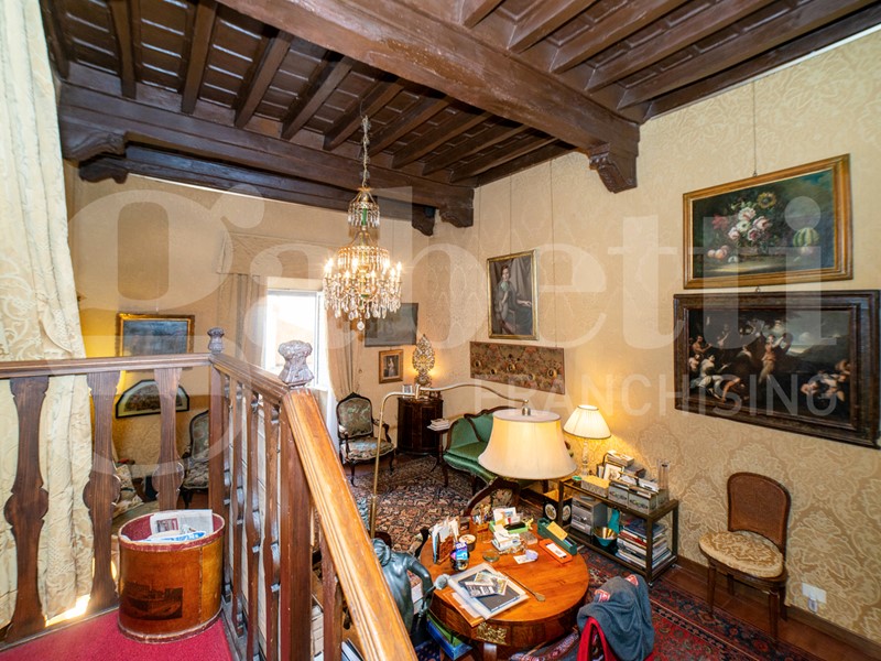 L'appartamento oltre ad una caratteristica scala di accesso condominiale completa di affreschi e sculture, dispone di riscaldamento autonomo, soffitti a cassettone alti 4 metri e pavimentazione in cotto antico.