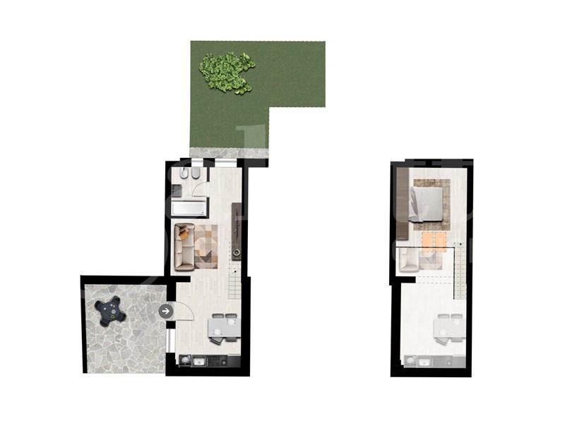 Splendido bilocale a schiera di nuova costruzione CONSEGNA SETTEMBRE 2026 con stile architettonico loft che offre un'atmosfera moderna e accogliente, ideale per chi cerca un ambiente contemporaneo e confortevole. L'appartamento, disposto su 2 livelli è composto da: ingresso indipendente su ampia zona living con parete cottura a vista ed un bagno finestrato al piano terra mentre al piano primo troviamo la camera matrimoniale dotata di 2 velux. Completa la proprietà un giardino privato di 32 mq, perfetto per godersi momenti di relax all'aria aperta. Inoltre, è presente un comodo posto auto