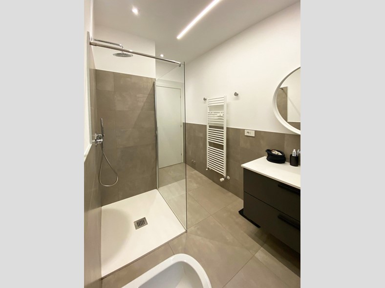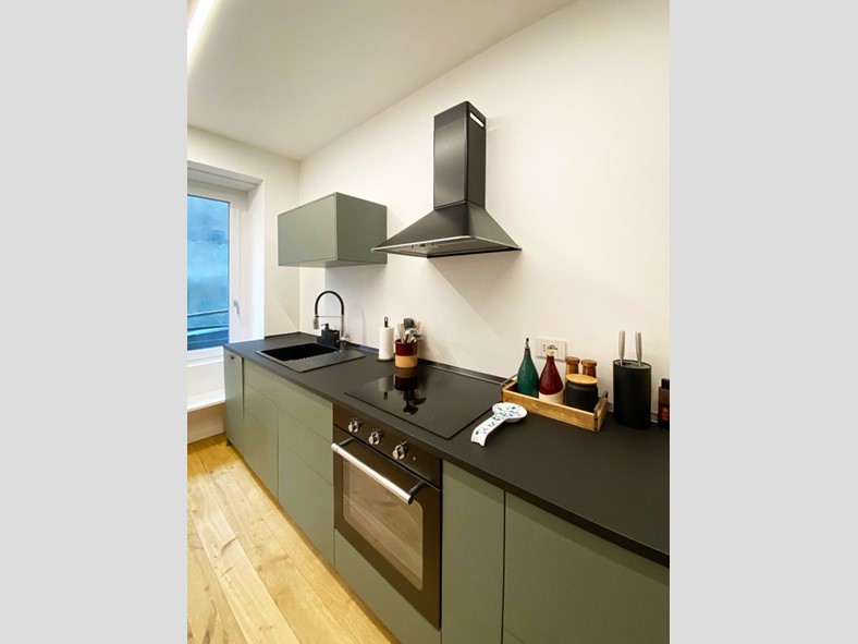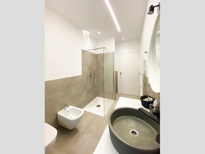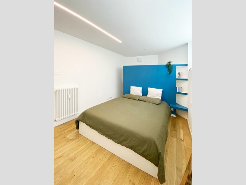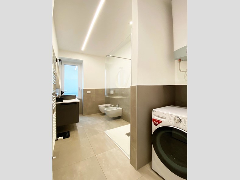 Questa raffinata soluzione abitativa si distingue per l'equilibrio tra eleganza e comfort moderno. Gli interni, curati in ogni dettaglio, presentano finiture di pregio e un design innovativo: il pavimento in parquet rovere, caldo e accogliente, impreziosisce la zona giorno e la camera da letto, mentre il bagno è rifinito in gres porcellanato di alta qualità e completato da sanitari sospesi Ideal Standard.