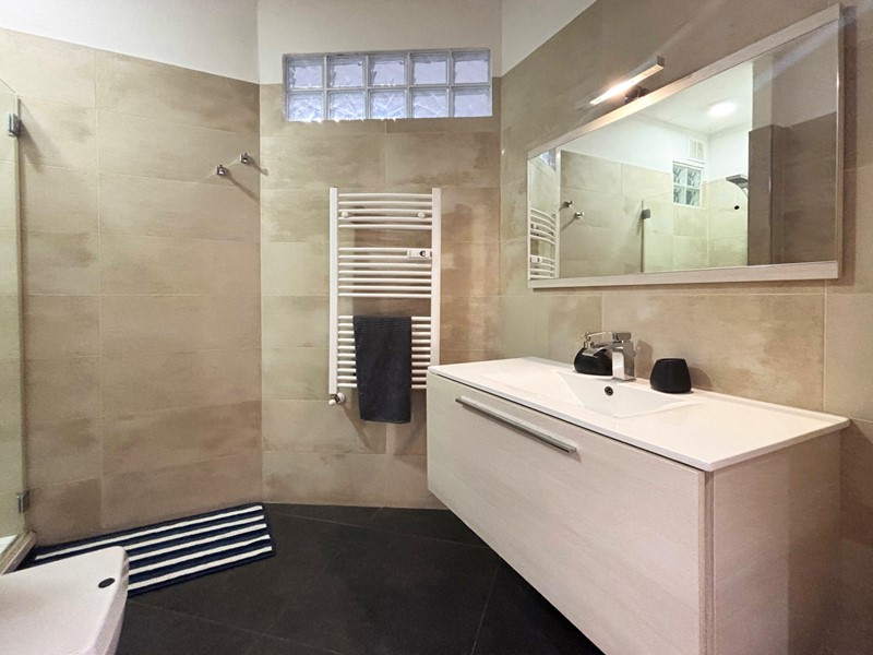 Ogni ambiente è stato pensato e realizzato con estrema attenzione ai dettagli, dando vita a spazi che esprimono unicità e uno stile ricercato. Le finiture interne, scelte con gusto raffinato, valorizzano ogni angolo della casa, mentre l'illuminazione crea atmosfere suggestive e avvolgenti: faretti a LED accompagnano con discrezione il disimpegno, mentre eleganti punti luce a parete impreziosiscono gli altri ambienti. La pavimentazione in prestigioso parquet di rovere, di grande formato, firmata Armony Floor e proveniente dalle foreste tedesche, dona calore e continuità agli spazi. Completano il quadro infissi in legno con doppi vetri, sinonimo di comfort e isolamento, e bagni impreziositi da sanitari sospesi dal design moderno ed essenziale.
