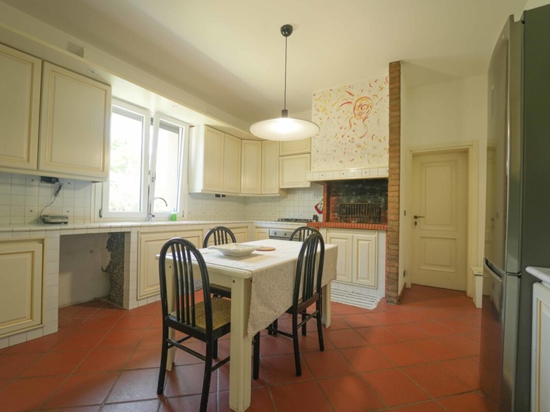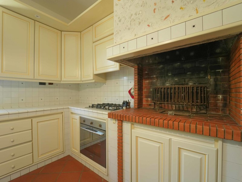 La disposizione interna offre ambienti spaziosi e accoglienti: un luminoso soggiorno di quasi 40 mq con camino, cucina abitabile anch’essa con camino, disimpegno, tre camere da letto e due bagni.