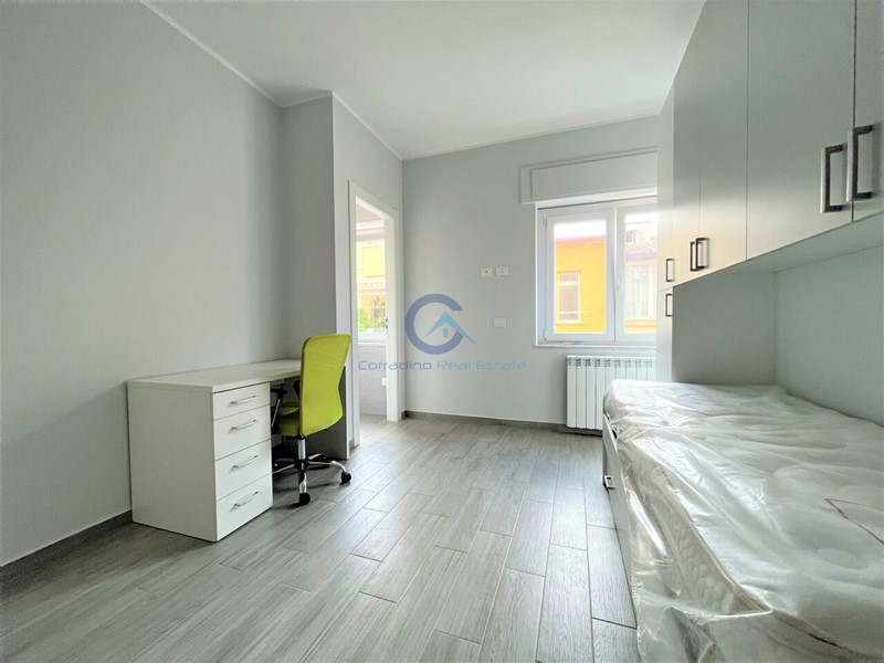 Catanzaro Lido, via Genova, in posizione privilegiata nel cuore del quartiere marinaro, proponiamo in vendita elegante appartamento posto al 1° piano in condominio signorile servito di ascensore. L'immobile, recentemente ristrutturato con materiali e finiture di ottima qualità, all'interno è così distribuito: ingresso su soggiorno living con cucina a vista e accesso al terrazzino, ripostiglio, bagno padronale con doccia e due camere da letto di cui una con bagno privato. Dotato d'impianto di riscaldamento autonomo con caldaia a condensazione, infissi in pvc con triplo vetro e portoncino blindato. Soluzione ideale per chi cerca una residenza principale di prestigio. Classe energetica B.