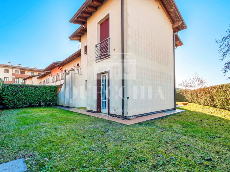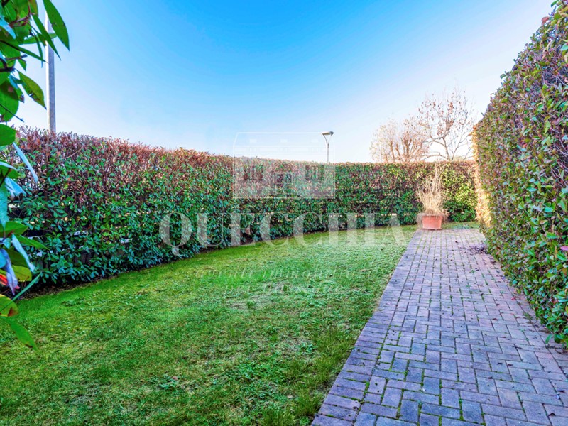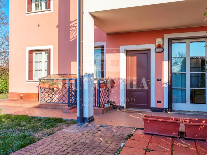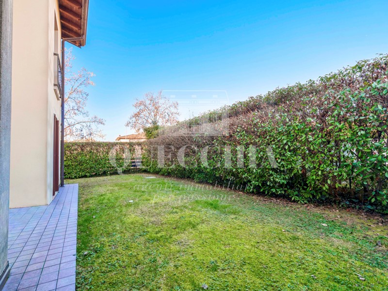 RONCADELLE, in elegante contesto di recente costruzione, luminoso appartamento trilocale con ingresso indipendente, portico e 350 mq di giardino privato. Tenuto benissimo. Composto da soggiorno, cucina separata, 2 camere da letto e bagno. Ampio seminterrato composto da taverna e bagno/lavanderia. Garage doppio. Riscaldamento autonomo. Aria condizionata. Allarme. Impianto di irrigazione. Già libero, consegna immediata. Classe energetica G - 185 Kwh/mqa.