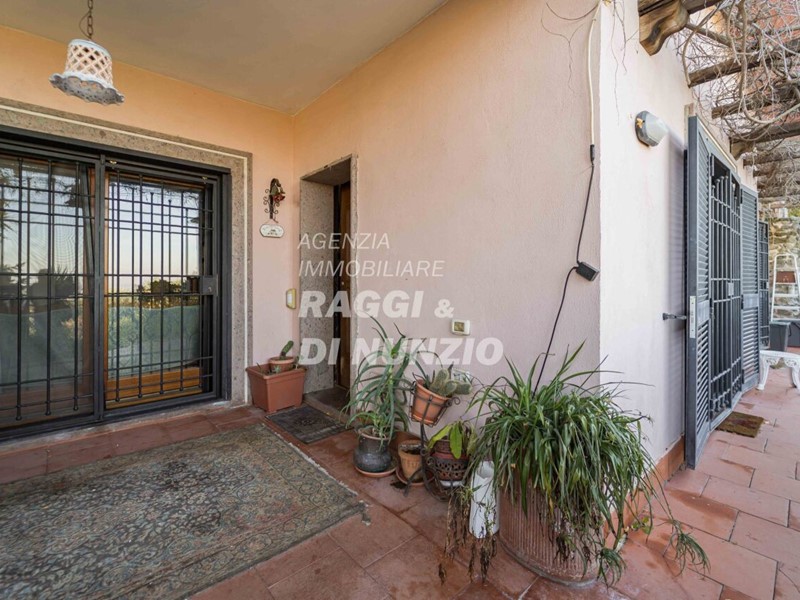 Grottaferrata V. Campovecchio vendesi villa in bifamiliare completamente ristrutturata nel 2004 composta da soggiorno con camino cucina a vista su zona pranzo camera matrimoniale con bagno interno camera bagno e portico al piano terra - camera ripostiglio lavatoio locale tecnico stenditoio e terrazzino al piano sottotetto - antisismica con pareti con rete elettrosaldata - cappotto esterno - tetto ventilato - pavimenti in cotto e parquet - infissi doppi vetri in legno - inferriate - persiane antiscasso - allarme - impianto di irrigazione - giardino privato - pozzo - piscina - panoramica sulla valle € 440.000,00