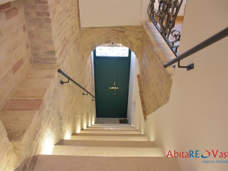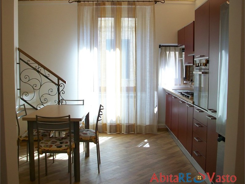 Vasto - Centro storico, Porta Nuova\nIn posizione centralissima e di assoluto pregio, a ridosso dell'arco di Porta Nuova e a pochi passi dal centro storico, proponiamo in locazione annuale un raffinato immobile terra/cielo con ingresso indipendente, oggetto di recente ristrutturazione eseguita con materiali di primissima qualità e completo di arredi nuovi. L'accesso avviene direttamente dal piano strada. Un'elegante scala, valorizzata da un'illuminazione studiata, conduce al piano principale, dove si apre un soggiorno di grande impatto estetico, impreziosito da soffitto con illuminazione a LED e mattoni faccia vista, in continuità con una cucina abitabile. Sullo stesso livello trovano spazio una camera matrimoniale, un bagno con doccia, una lavanderia e due balconi con doppia esposizione, che garantiscono luminosità e ricambio d'aria. Il piano superiore, collegato esclusivamente da scala interna e finemente rifinita, ospita una seconda ampia camera matrimoniale, una cabina armadio, un secondo bagno con doccia e un balconcino riservato. Completa la proprietà una soffitta pavimentata e rifinita, ideale come magazzino o ripostiglio. L'immobile si distingue per l'elevato livello delle finiture: parquet in tutti gli ambienti, impianto termo-autonomo, climatizzazione, zanzariere su tutte le finestre. Soluzione elegante e funzionale, ideale per chi ricerca indipendenza, comfort e una posizione centrale di assoluto valore. Libero da subito. Contratti annuali, riservati a conduttori referenziati, max. 2, con reddito certo e dimostrabile. Animali domestici non ammessi. - Maggiori Dettagli: Videocitofono, Lavastoviglie, Rete ADSL, Cucina Abitabile, Doppio servizio, Ripostiglio, Climatizzato