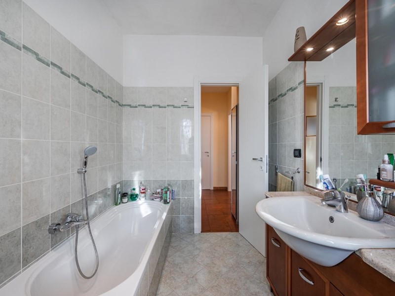 I due bagni, entrambi completi di servizi, rispondono alle esigenze di comfort quotidiano: uno è dotato di vasca e finestra, l’altro di una pratica doccia, offrendo soluzioni ideali per ogni momento della giornata.