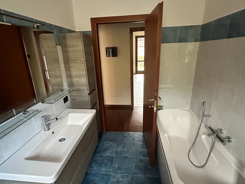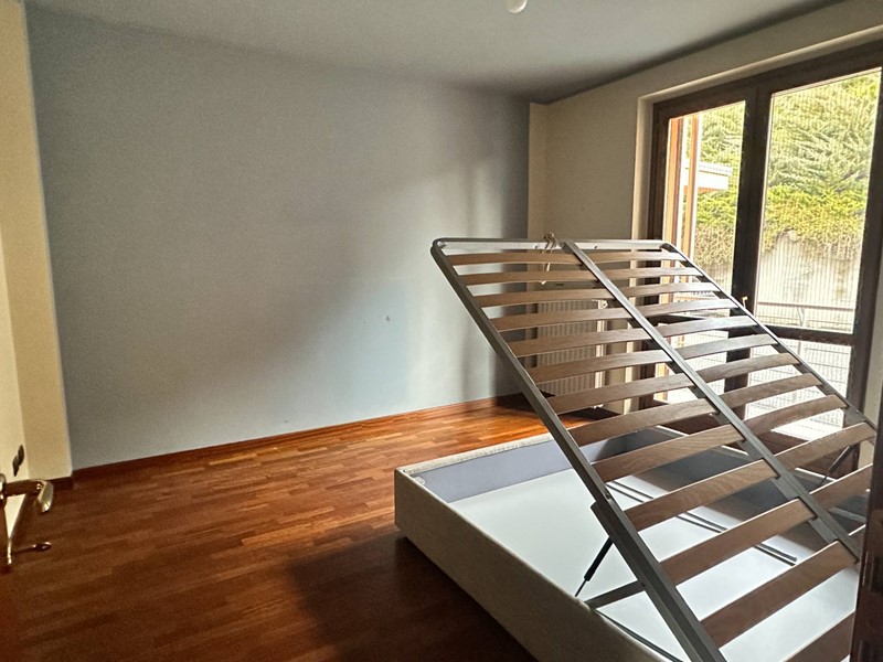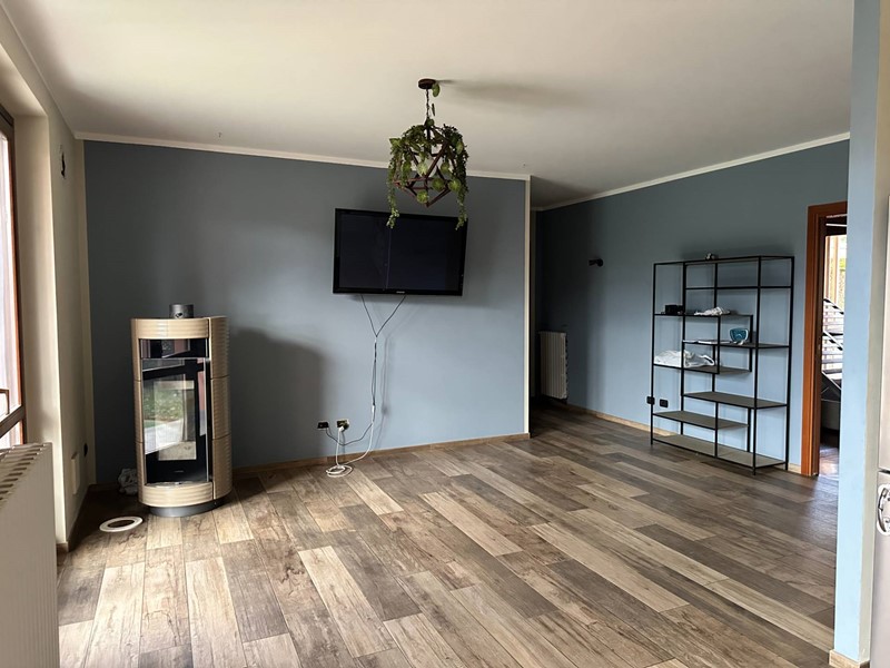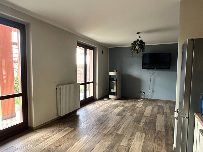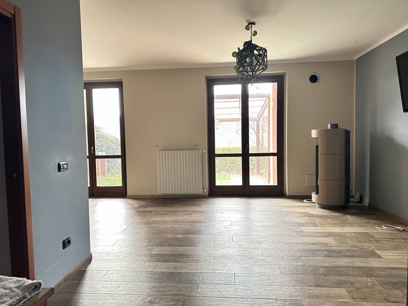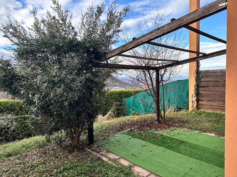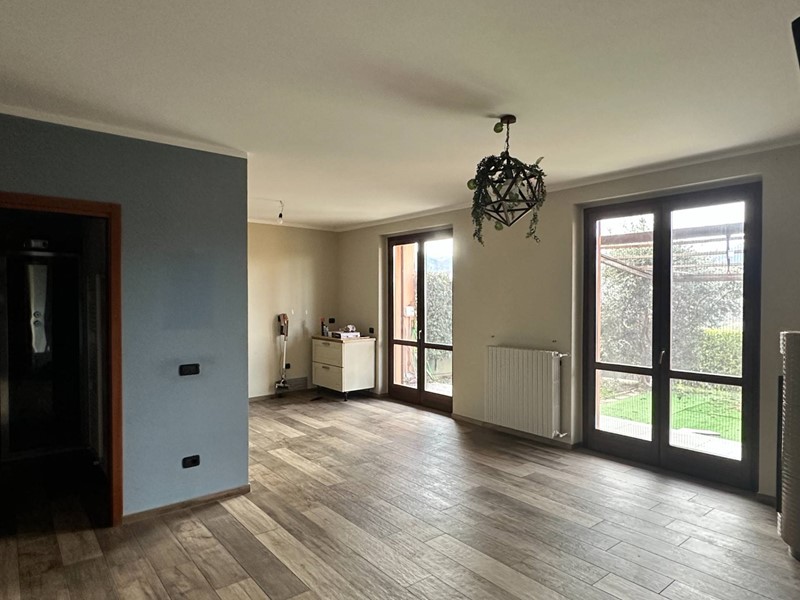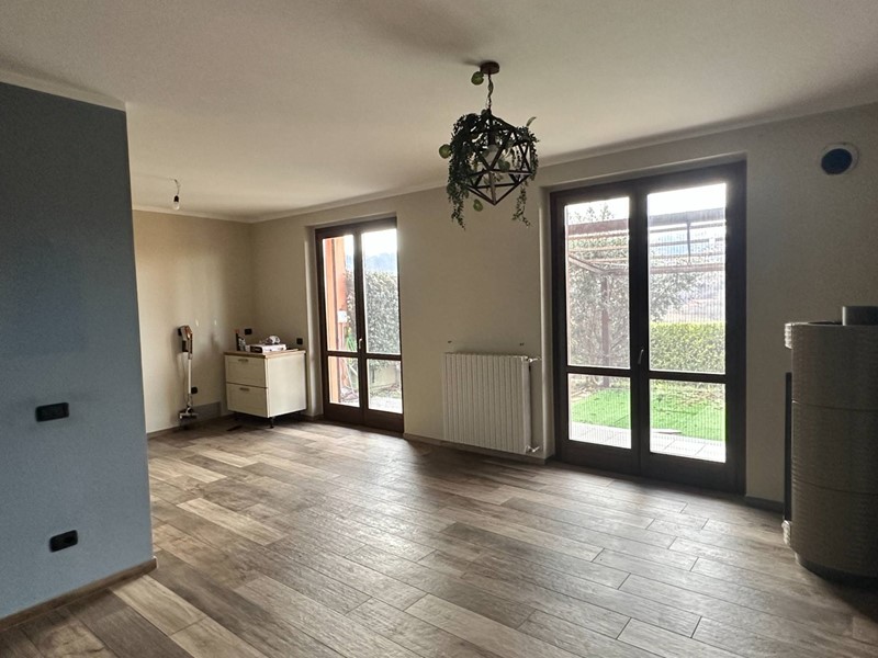 Composto da ampio ingresso in soggiorno con cucina a vista e accesso diretto al giardino esterno dal quale è possibile ammirare uno splendido panorama verso l'arco alpino. Zona notte con due camere da letto, due bagni e balcone.