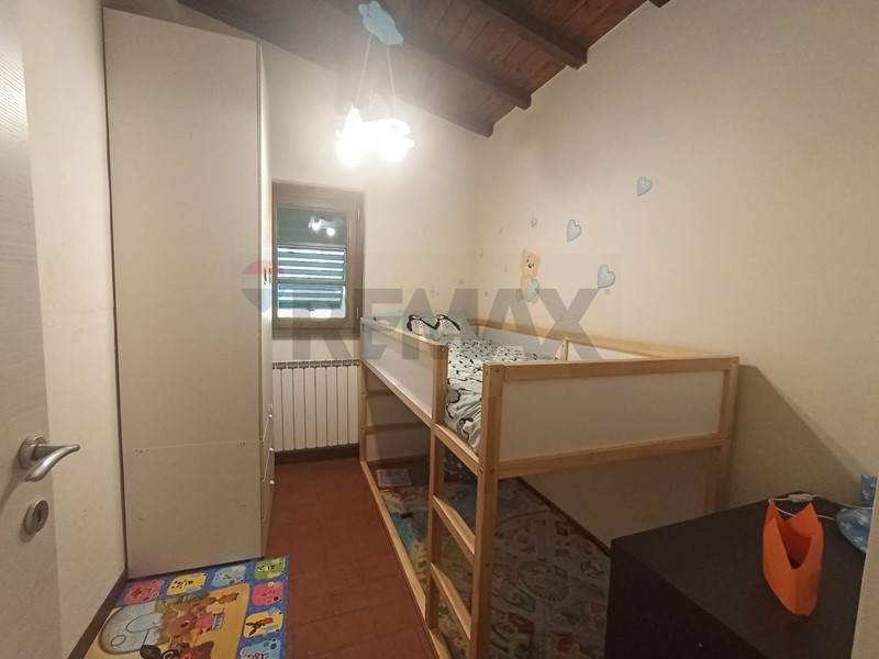 Al primo piano si sviluppa la zona notte, composta da due camere singole, una camera matrimoniale, un bagno con doccia e una zona lavanderia.