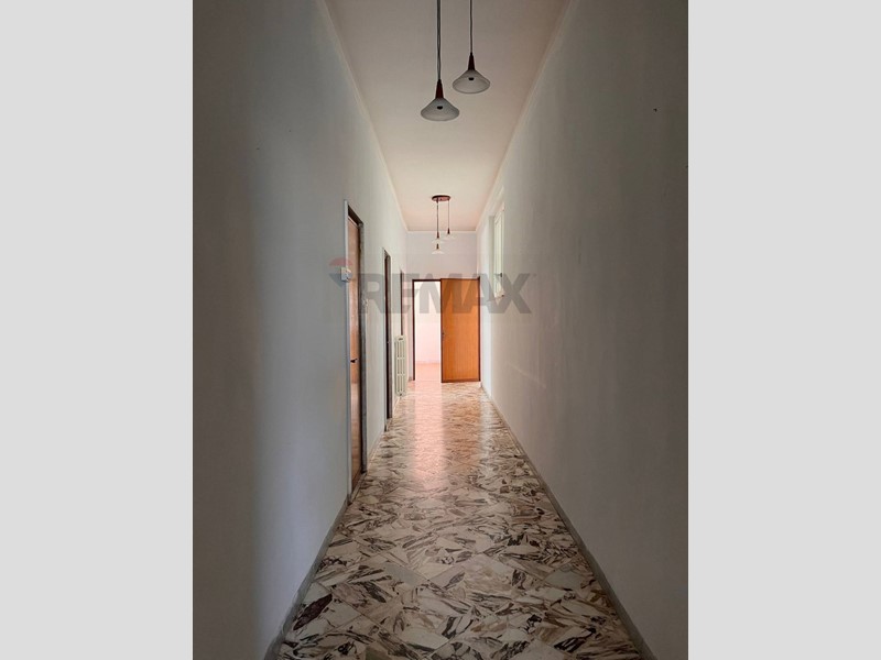 Varcata la porta d'ingresso ci troviamo in un ampio salone con affaccio su strada principale, proseguendo un piccolo ripostiglio e in seguito la cucina abitabile con veranda coperta. Lungo il corridoio si articolano i due bagni. La zona notte è composta da tre camere da letto, due finestrate e una con balcone.